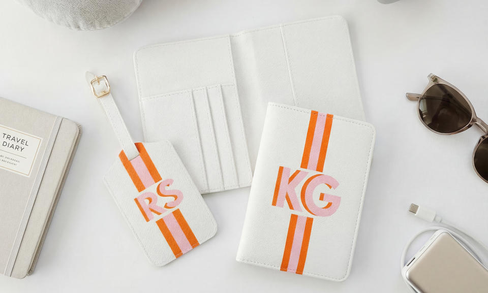 Introducing our Customizable Travel Gift Set, the ultimate way to elevate your wanderlust adventures with a touch of personalized luxury. Gift set can include a stylish luggage tag, a sleek passport holder, a compact card wallet, an elegant clutch, all thoughtfully designed to make your journeys both functional and fashionable. Add the personalized gift box and we will lovingly nestle all your treasures in a beautifully adorned see through gift box making it a truly memorable and thoughtful gift.