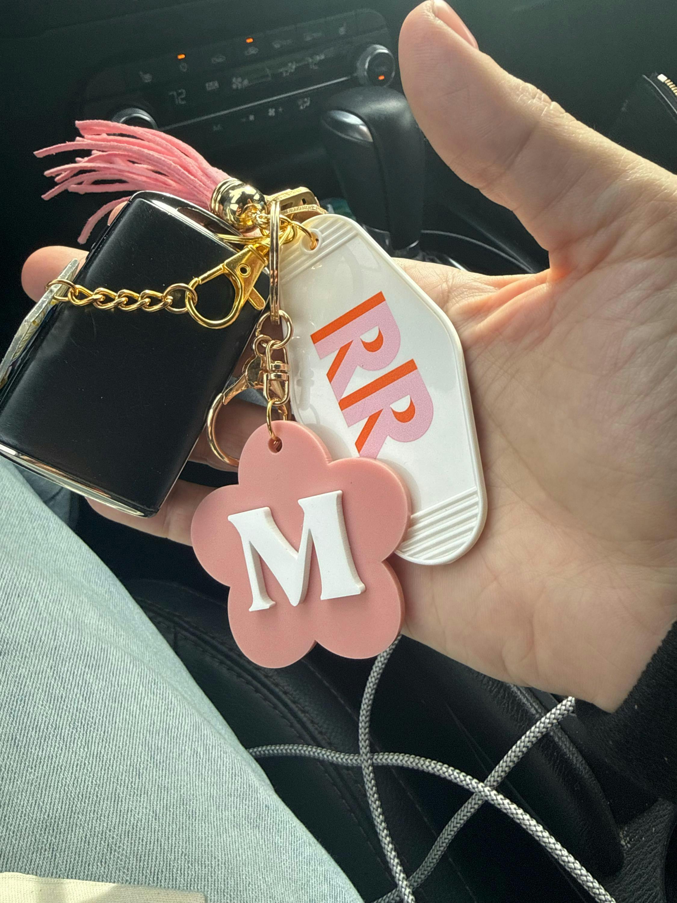 Personalized Shadow Monogram Retro Motel Keychain