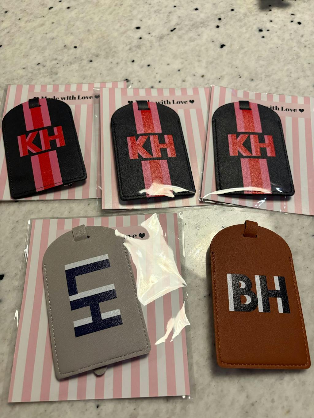 Personalized Shadow Monogram Vegan Leather Luggage Bag Tag Bridesmaid Gift Bachelorette Party Favors